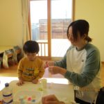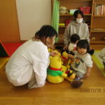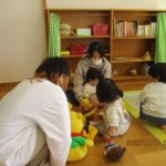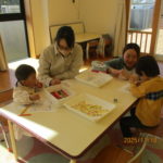 今回は7組のお友達が寒い中遊びに来てくれました😊お誕生日のお友達がいなかったので、のんびりと好きな遊びを楽しみました。シールはりを楽しんだりマットのトンネルをくぐったり、ブロックをやったりと思い思いの遊びをたくさん楽しんだ後、おうちの人にだっこをしてもらいお部屋の中をお散歩‼️こちょこちょもしてもらって楽しみました🎵