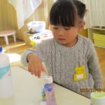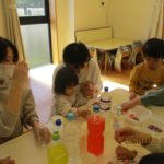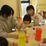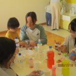 「作ってあそぼう!」ではセンサリーボトルを作りました✨キラキラするビーズやラメを見てママさんたちからも「わ~!きれい!」と歓声が・・・😍親子で、「どれにする?」「どの色にしようか?」などたくさんの会話が聞こえてきました。言葉の獲得やコミュニケーションにもつながって素敵な時間でしたね🥰指先も上手に使っていましたよ👏作ったボトルを大切そうに持ちながら遊ぶ姿やじ~っと見つめる姿がとっても可愛かったです☺️癒し効果もあるそうなのでおうちの人も時々眺めて癒されてくださいね😉
