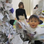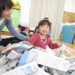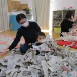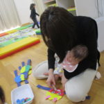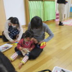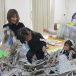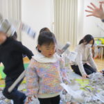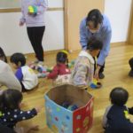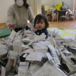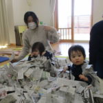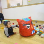 1月20日(火)には月に一度のイベントがありました。今回は「新聞遊び」を楽しみました。1月生まれのお友達も遊びに来てくれたので、みんなでおめでとー!とお祝いもしました🎉音楽に合わせてハイハイをして体を動かしたあと、手遊びやふれあい遊びをしたね🎶新聞遊びでは、いないいないばあっ!をしたりビリビリ破いたり・・・😁初めての感触に顔をゆがませる子がいたり、音を楽しんでいる子がいたりといろんな楽しみ方をしていました✨遊んだ後の新聞は袋に入れて鬼に変身‼みんなも鬼のお面を作って鬼に変身‼「鬼は~外‼」と言って鬼退治をしました。お家でも豆まきをして楽しんでね💖