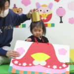 たくさん遊んだ後にフラワー紙でおひなさまを作って持ち帰りました。帰る前におひなさまになって写真撮影📷とっても可愛いおひなさまに変身しました✨