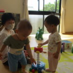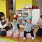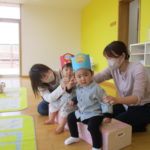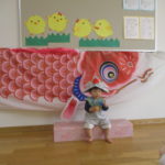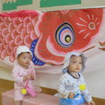 おうちの人と目と目を合わせてふれあい遊びも楽しみました✨こちょこちょをしてもらってたくさん笑ったね。みんなの笑顔がとても素敵でしたよ🥰お土産はこいのぼりとかぶとでした🎏 こいのぼりと一緒に写真も撮ったね📷また一緒に遊ぼうね☺️