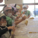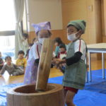 11月14日に七五三のお祝いで、園でも青組さんがお餅つきをしました。