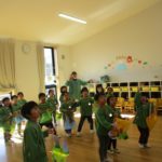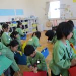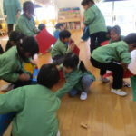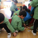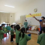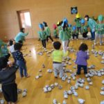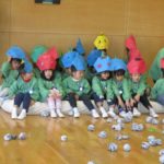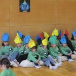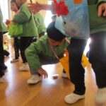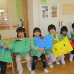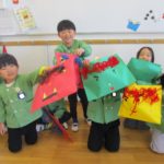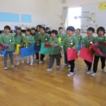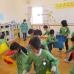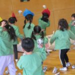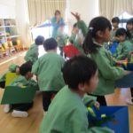 今度は、青組さんが小学校に元気に行けるように、たんぽぽ組、藤組、赤組、桃組のお友達が青組さんのおなかの中の鬼を追い払いました。もう大丈夫!青組さんは、みんな元気な小学生になりますね♡