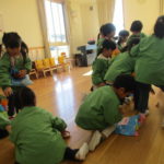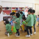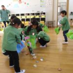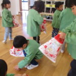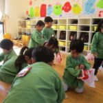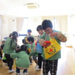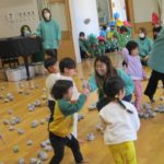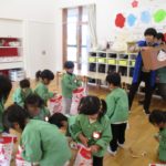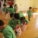 その後は、お部屋に戻って、福の神(園長先生)に、お菓子まきをしてもらいみんなで楽しみました。(3歳児以上)たんぽぽ組、藤組さんもお菓子は持ち帰りました。